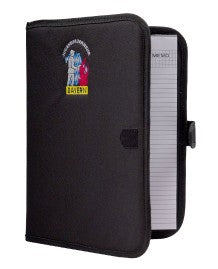 Material: 100% Polyester (600D), kombiniert mit 100% Polyvinylchlorid (PVC) Beschreibung: Portfolio, diverse Utensilienfächer, mit A4-Notizblock, Ringbuch-Mechanik Veredelung: zum Besticken geeignet (Spezialrahmen erforderlich)