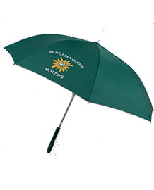Stock- und Taschenschirme in vielen Farben und Ausführungen mit Hand- oder Automatiköffnung, Durchmesser zwischen 85 und 130 cm, Nylon- oder Polyesterbezüge, teilweise mit Teflon-Ausrüstung und TÜV zertifiziert